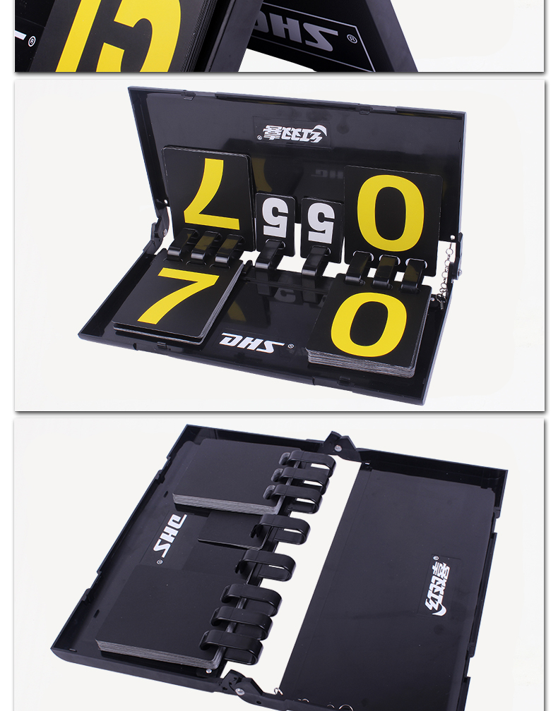 紅雙喜記分牌,編號F504,2000年悉尼奧運(yùn)會(huì)指定器材。特點(diǎn):折疊式。材質(zhì)特點(diǎn):工程塑料外殼,特制紙板芯頁。