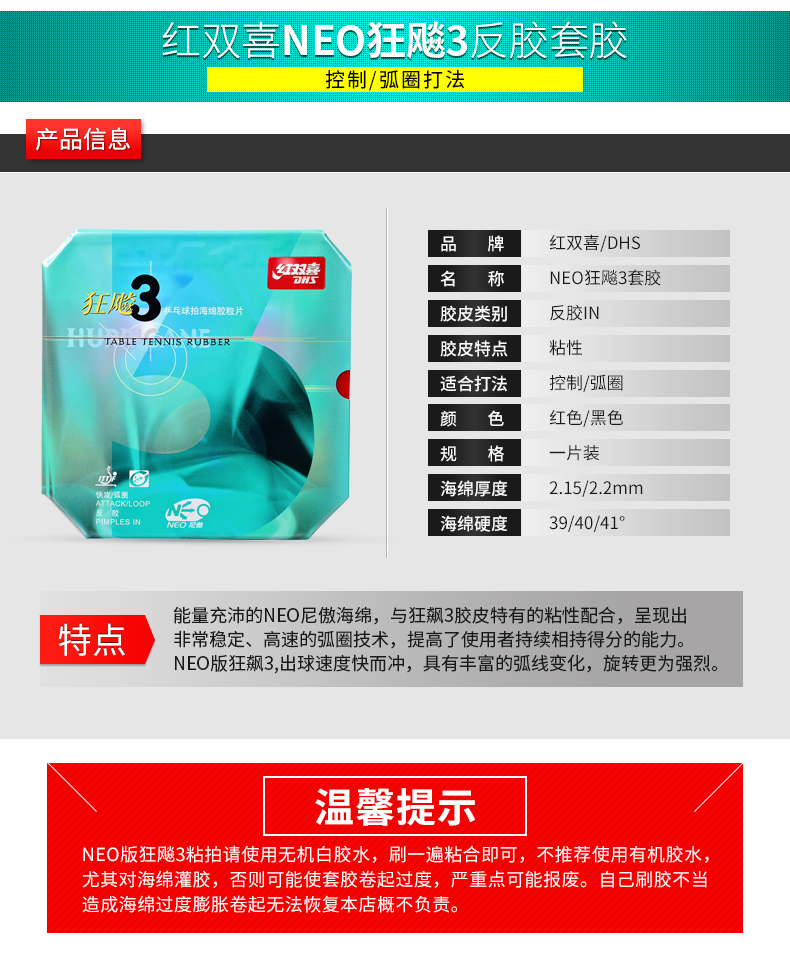 - 商品名稱:紅雙喜 尼傲NEO 狂飆3 尼奧狂3狂飚三(含37度柔)