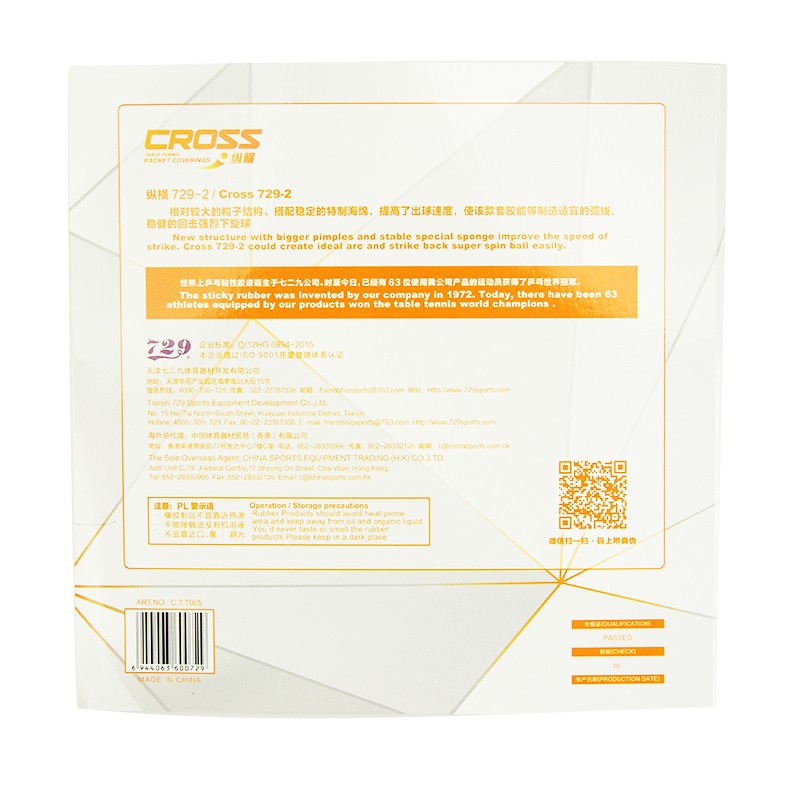 縱橫729-2反膠是由天津橡膠研究所研制的產(chǎn)品。它是在原"729"反膠的基礎(chǔ)上發(fā)展的一款新型反膠,高彈性、速度快、前沖性快攻反膠。既有速度,又有旋轉(zhuǎn),配以橙色縱橫海綿更能發(fā)揮其威力。同時(shí)新型儲能貼合技術(shù)的應(yīng)用更能體現(xiàn)其中遠(yuǎn)臺的出球威力,適合快攻弧圈的選手使用。