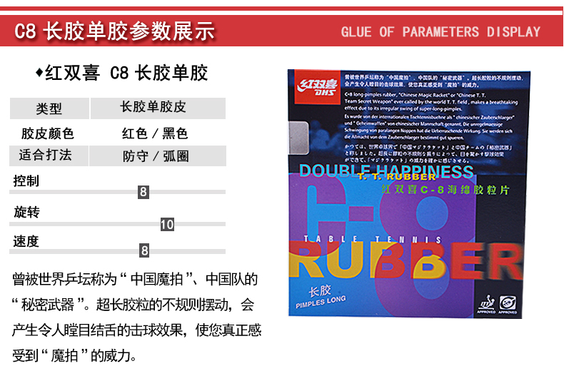 - 商品名稱:紅雙喜 C8 長(zhǎng)膠單膠皮