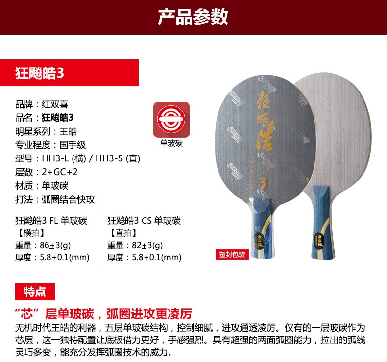 - 商品名稱:紅雙喜狂飚 狂飚皓3