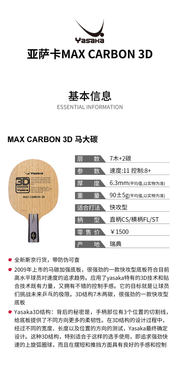 型號(hào):YASAKA MALIN MAX CARBON 3D