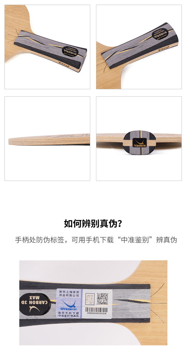 Yasaka 3D結(jié)構(gòu):背后的秘密是,手柄部位有3個(gè)位置的切割線,給底板提供了不同方向更多的柔韌性。在3D結(jié)構(gòu)的設(shè)計(jì)過程中,經(jīng)過不同的寬度、長度以及位置的方向的測(cè)試,Yasaka最終確定設(shè)計(jì)。這種3D結(jié)構(gòu),特別適合于這樣的選手使用,即追求強(qiáng)勁快速的上旋弧圈球,而且在擺短和推擋方面具有良好的手感和控制。