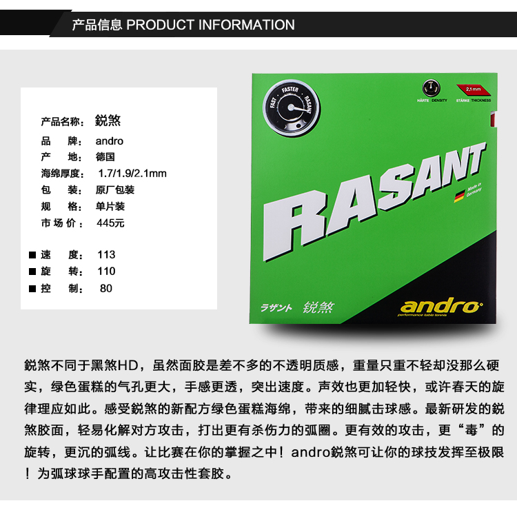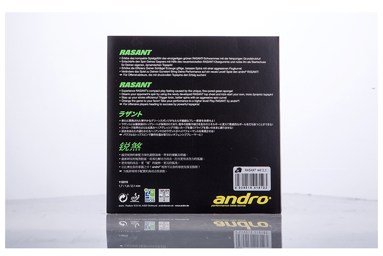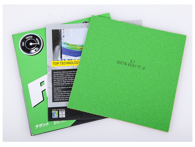 銳煞(Rasant)不同于黑煞HD,雖然面膠是差不多的不透明質(zhì)感,重量只重不輕卻沒那么硬實(shí),綠色蛋糕的氣孔更大,手感更透,突出速度。聲效也更加輕快高坑,或許春天的旋律理應(yīng)如此。