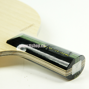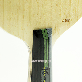 板的結(jié)構(gòu)為3木2碳,屬于柔中帶剛性能均衡的弧圈板。面材較厚較軟。手感柔和,吃球良好,小力量出球較穩(wěn)有利控制。碳層直接代替了力材使板身厚度大大降低,甜區(qū)增大,板身的減薄使重量減輕,發(fā)力時(shí)板身形變加大,大芯采用了拼接工藝,使彈性值更均勻。拍肩稍寬重心平衡,有利于擺速,和正反手的轉(zhuǎn)換。同樣是收腰柄,但收的幅度沒有那么夸張,拇指和食指握拍部位做的稍粗使拍柄握起來很舒服。