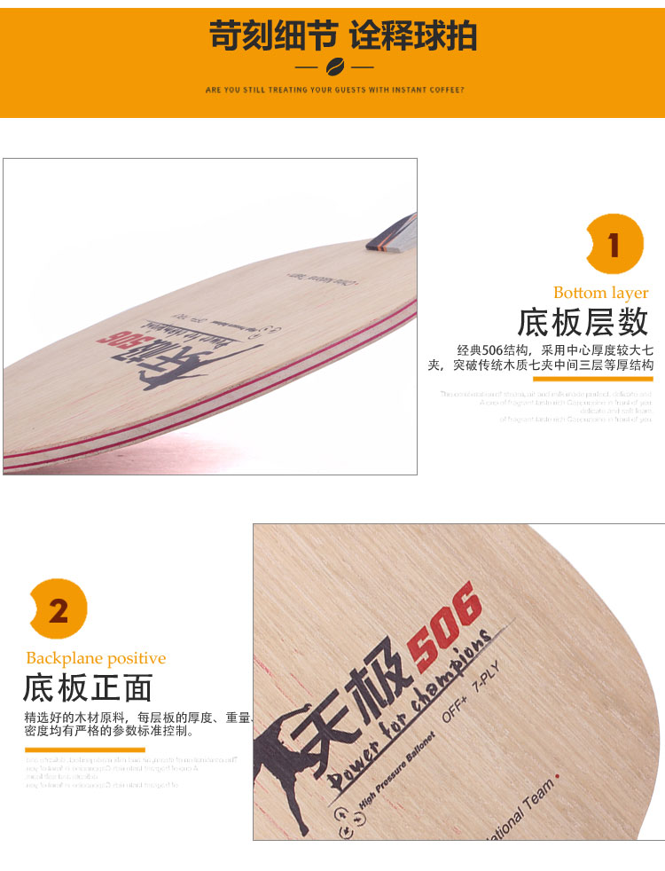 專業(yè)隊(duì)特供底板,中遠(yuǎn)臺(tái)王者。7層純木,經(jīng)典“506”結(jié)構(gòu),大芯層使用類高壓氣囊技術(shù),力量貫通無滯,底勁充沛。手感和控制極佳,擁有出色的反彈衰減率,在連續(xù)對攻中仍能保持穩(wěn)定的性能,具有超強(qiáng)的相持能力。