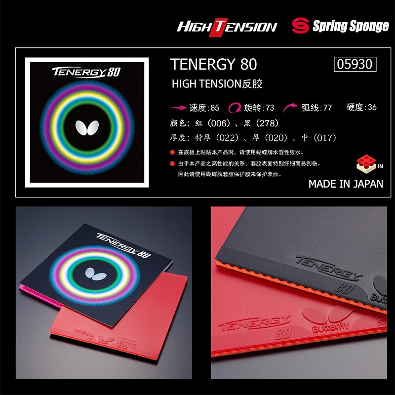 - 商品名稱:蝴蝶BUTTERFLY TENERGY 80 (05930)套膠蝴蝶T80