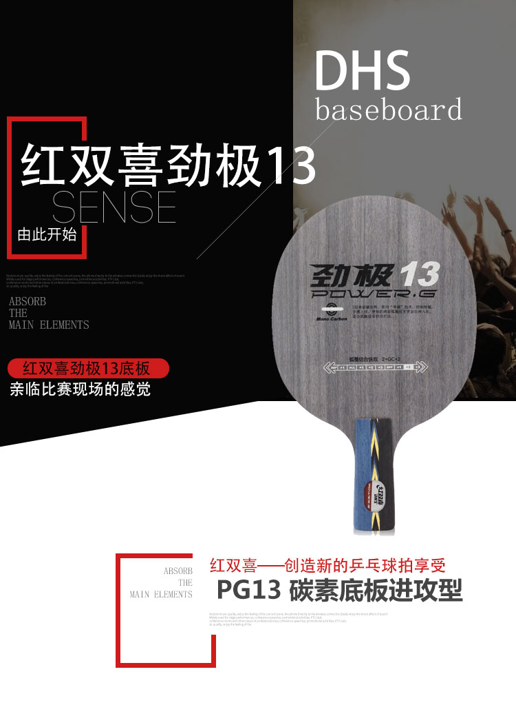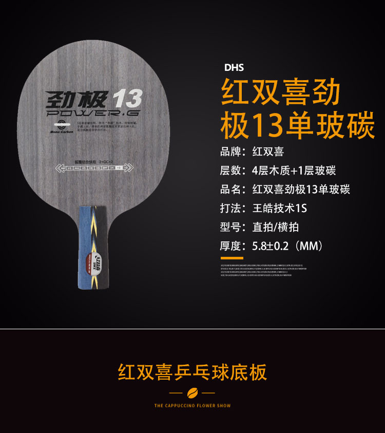 - 商品名稱:紅雙喜DHS 勁極13 5層單玻碳 專業(yè)乒乓底板