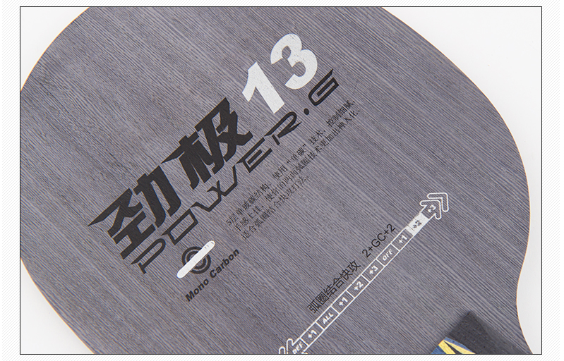 5層單玻碳結(jié)構(gòu),使用“單碳”技術(shù),控制細(xì)膩,手感上佳,兩面弧圈技術(shù)的發(fā)揮愈加出神入化,適合弧圈結(jié)合快攻打法。