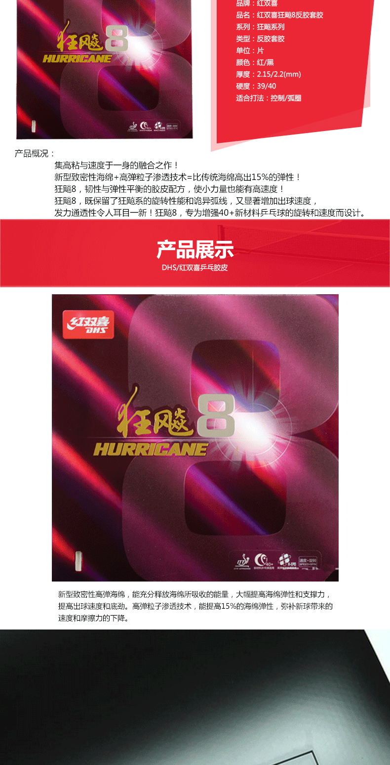 - 商品名稱:紅雙喜DHS 狂飆8 狂飚8 運海25#海綿