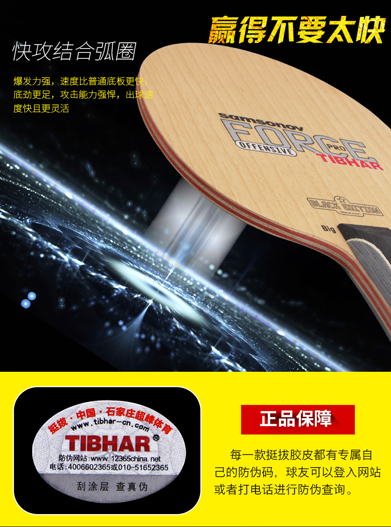 - 商品名稱:挺拔Tibhar 黑色薩姆超能底板 黑薩 7層純木