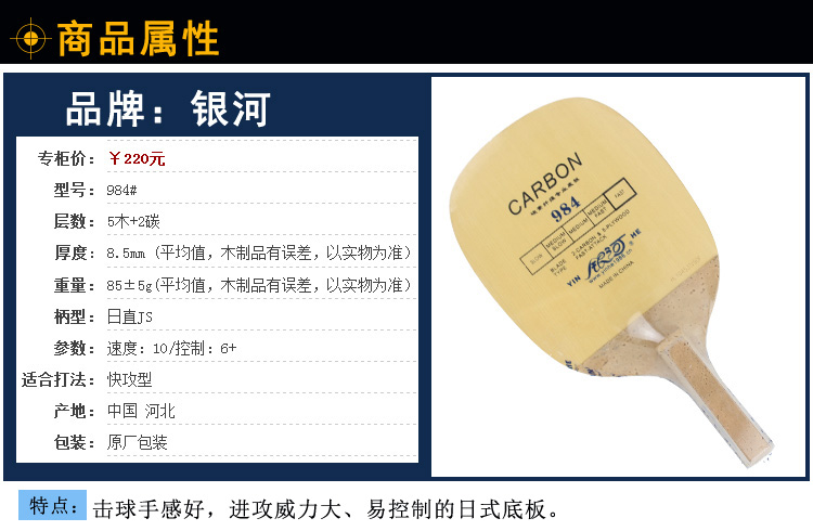 • 擊球手感好,進攻威力大、易控制的日式底板。
