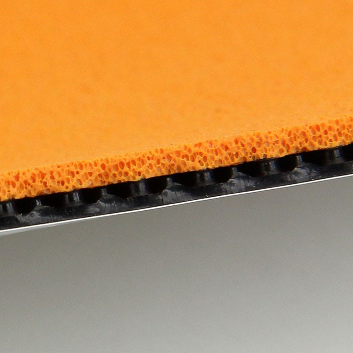 要做出充足的彈性,實際上并非那么容易:首先需要套膠擁有充分的形變能力,既要做到深度持球,也要做到高速回彈;其次需要海綿有足夠的支撐力,為膠皮的形變提供支撐,同時又不能喪失整體感。