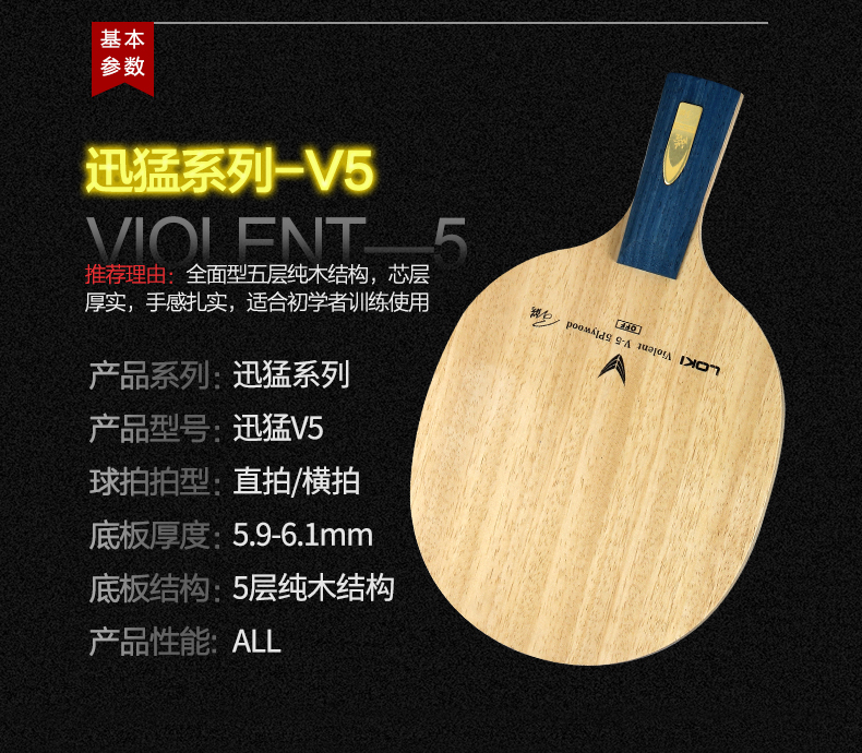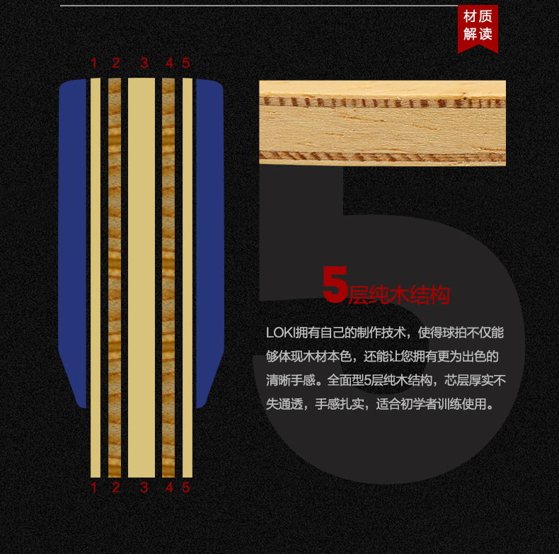 LOKI雷神 迅猛V5,全面型五層純木結(jié)構(gòu),芯層厚實而不失通透,加強了底板自身的發(fā)力效果,手感扎實,適合初學(xué)者訓(xùn)練使用。