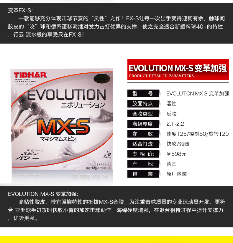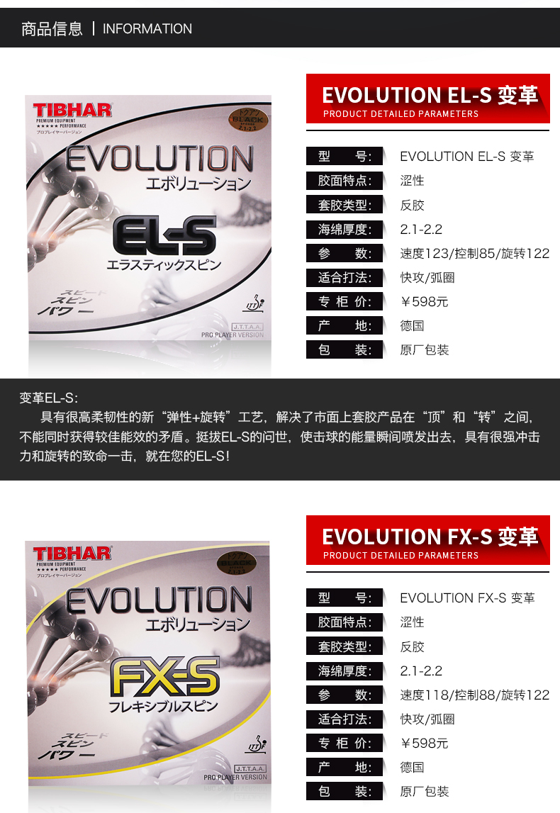 商品名稱:挺拔TIBHAR EVOLUTION EL-S 變革能量全能軟型內(nèi)能乒乓球膠皮反膠套膠