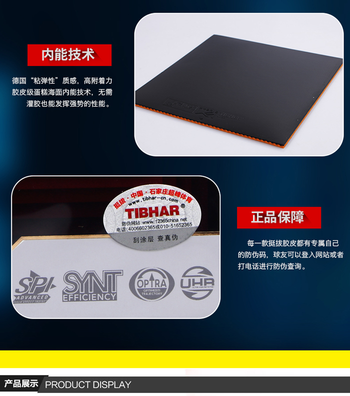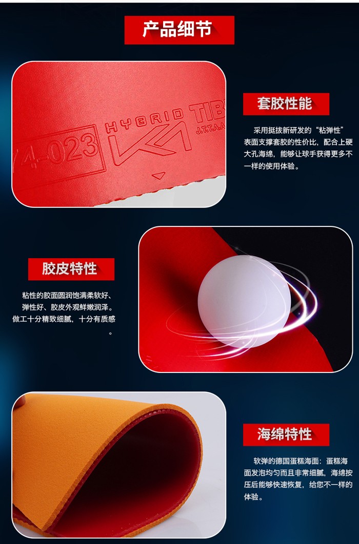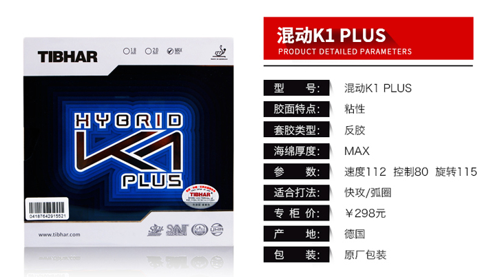 商品名稱:挺拔TIBHAR 2016新款套膠 混動(dòng)K1(藍(lán))大孔海綿 超粘特性 新的殺傷利器!