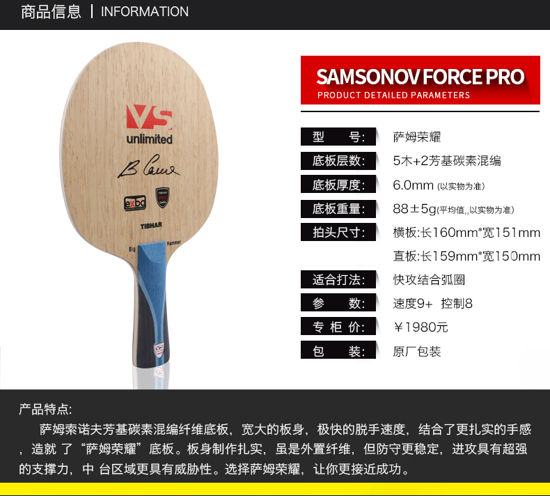 商品名稱:挺拔Tibhar 2016新款專業(yè)底板 薩姆榮耀 老薩的榮耀等你一起