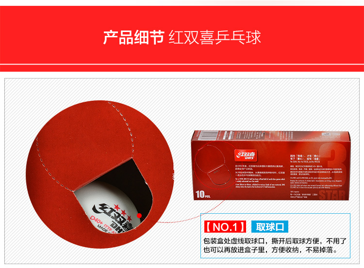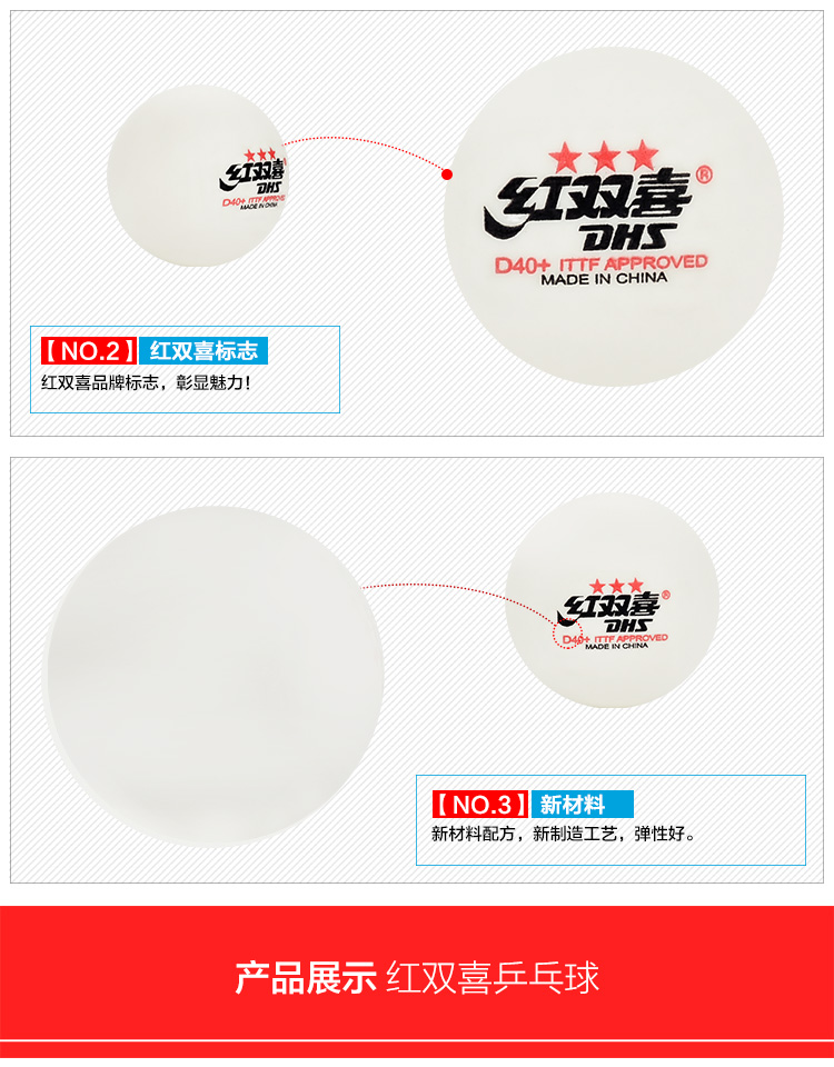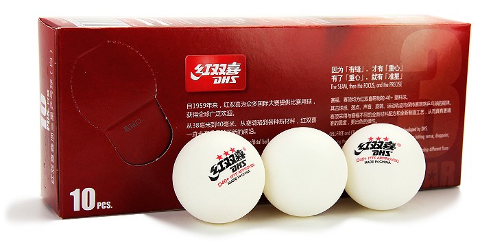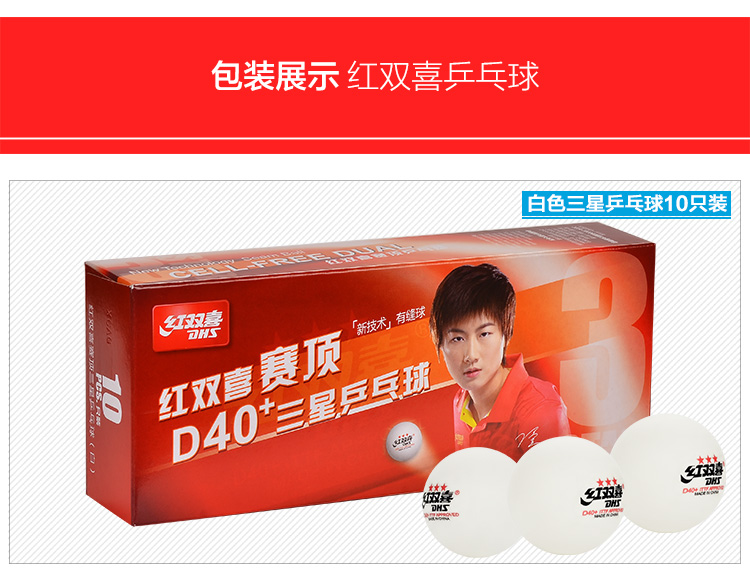 - 商品名稱:紅雙喜DHS 新款40+新材料有縫乒乓球 賽頂三星 10只裝 更圓更耐用