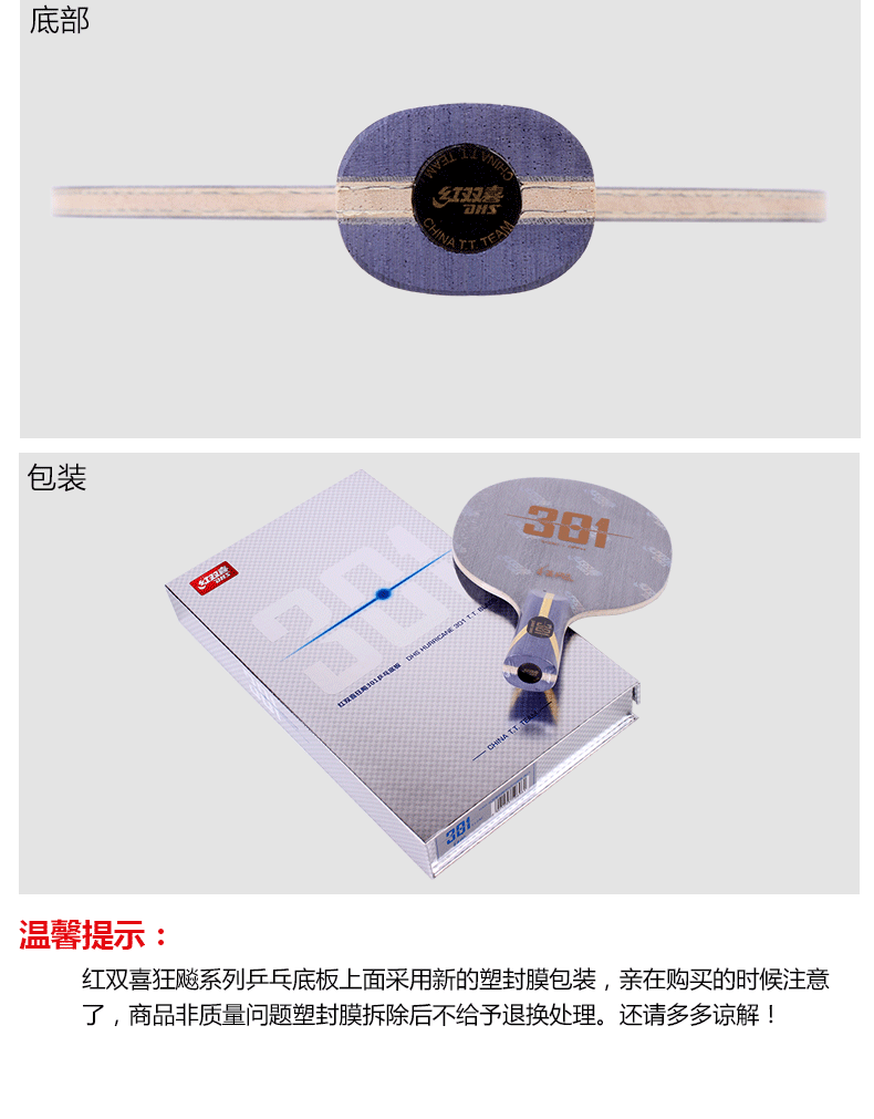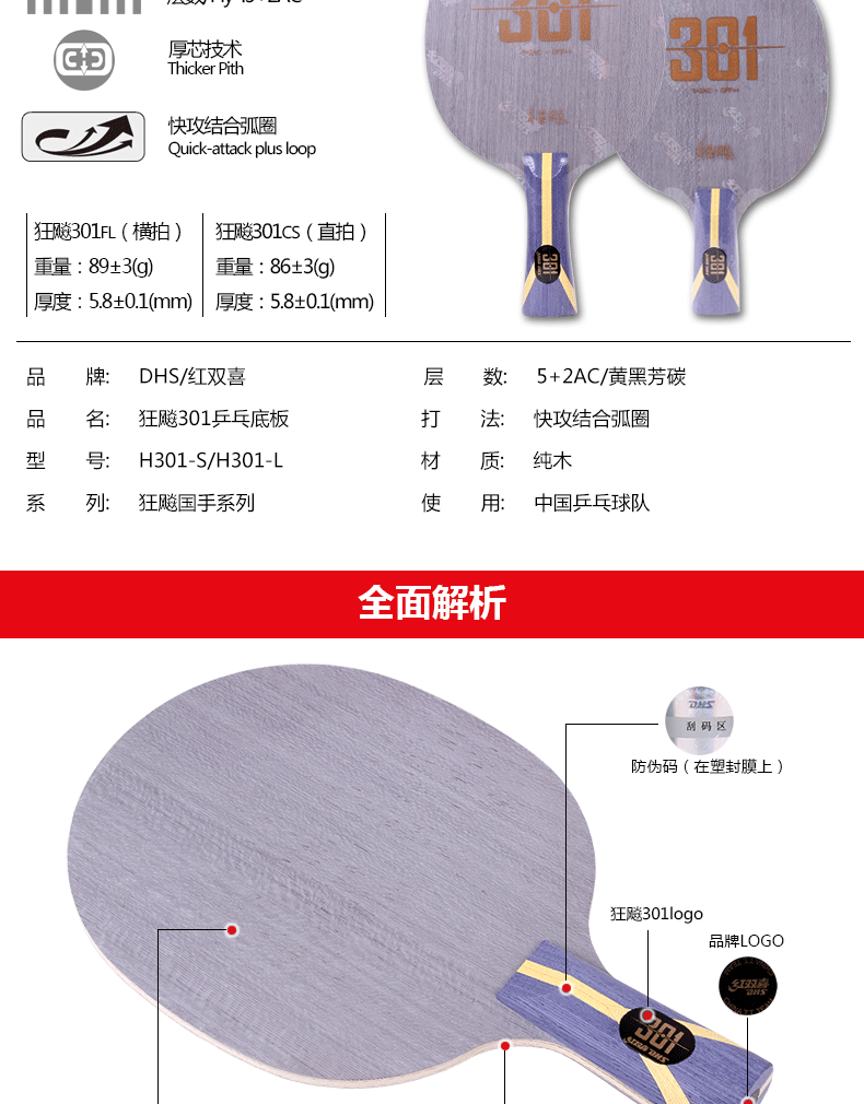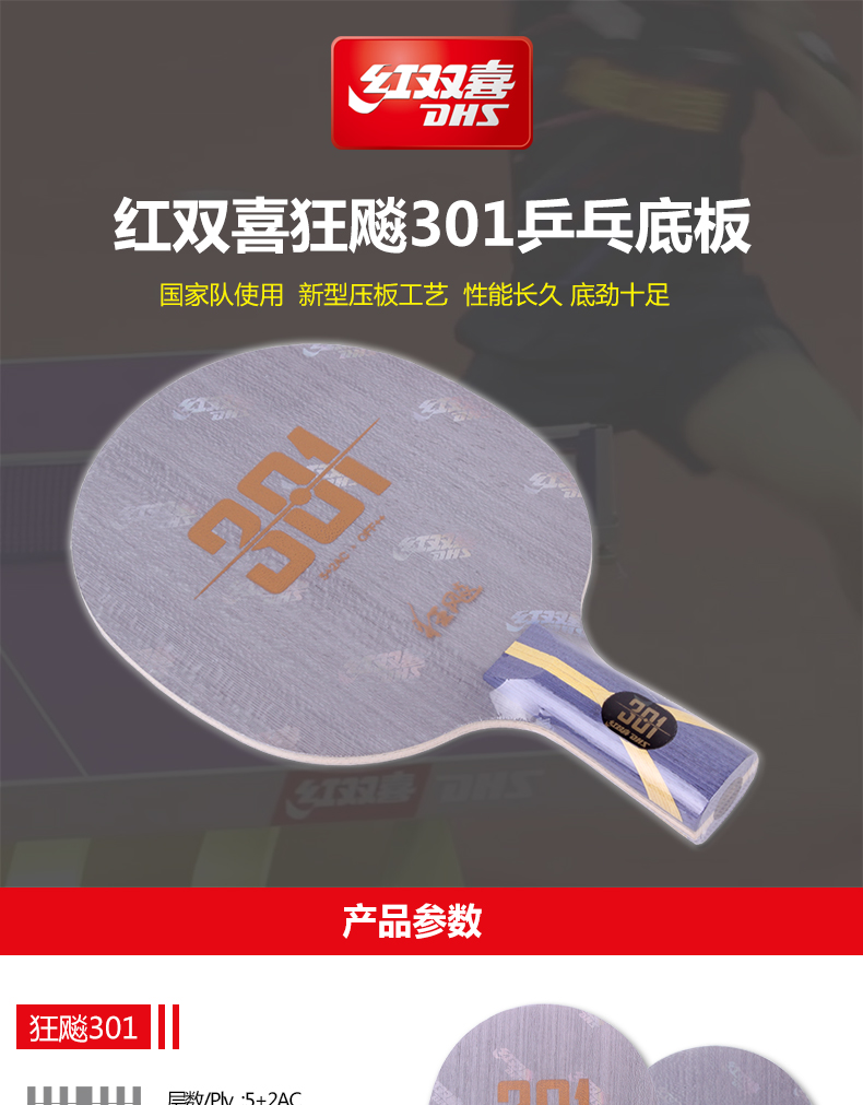 - 商品名稱:紅雙喜DHS 狂飚301 狂飆301乒乓球?qū)I(yè)底板