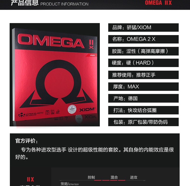商品名稱:驕猛XIOM 2017新款專業(yè)套膠 歐米伽ⅡX 球拍上的又一神器!