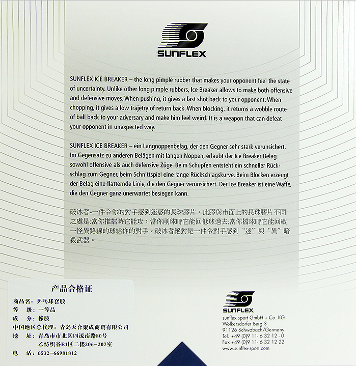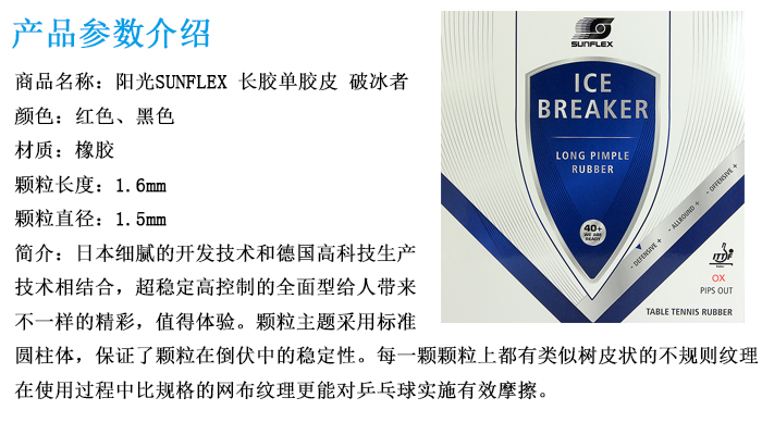 - 商品名稱:陽光SUNFLEX 長膠單膠皮 破冰者