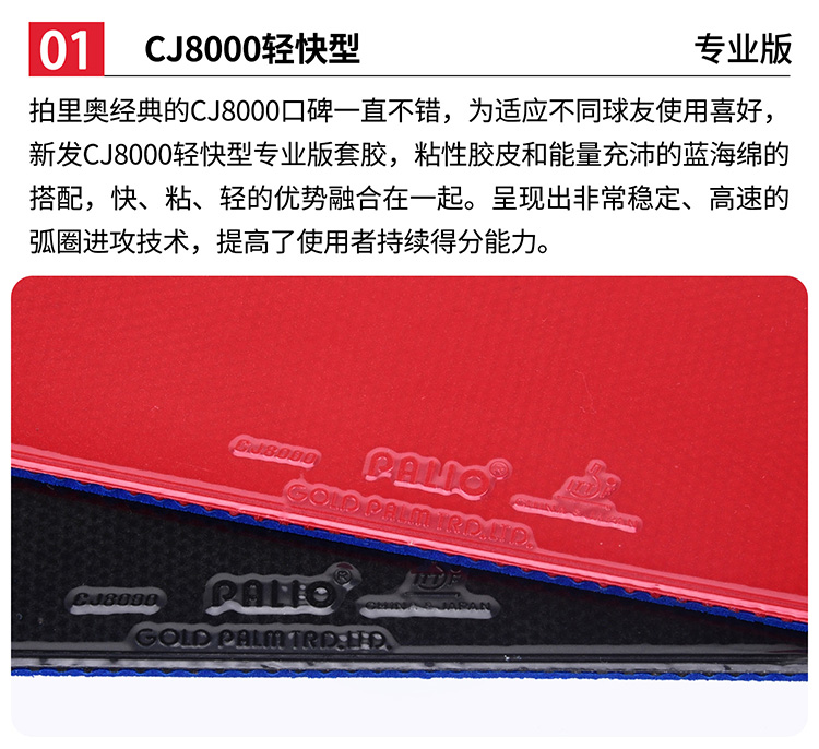 • 商品名稱:拍里奧Palio CJ8000輕快型PRO專業(yè)版套膠 藍海綿版 快!粘!輕!