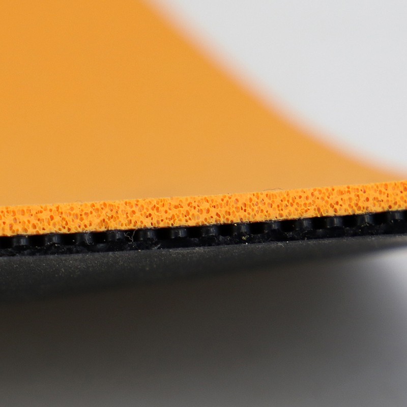 ESC科技(海綿單元放大科技):海綿層中放大型氣孔的尺寸大于普通氣孔,為套膠提供卓越的彈射效應(yīng),在上旋球的對(duì)戰(zhàn)中制造更高弧線。同時(shí),ESC科技加固底板與膠皮之間的連接,在擊球中回饋更好的手感和更清脆的擊球聲。