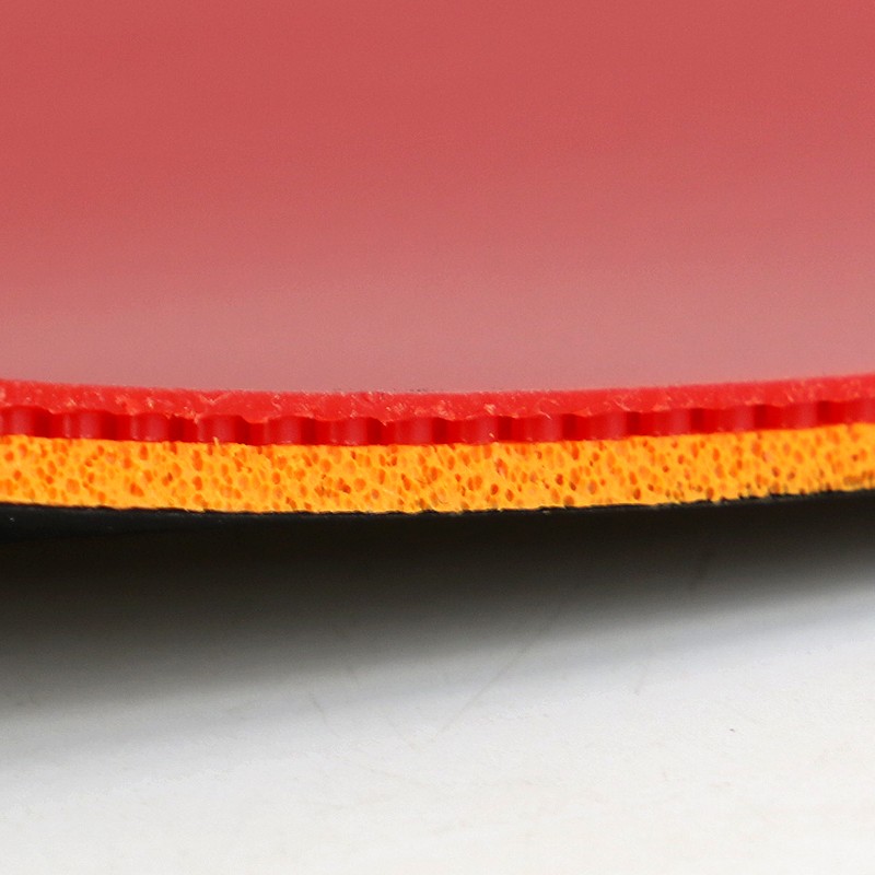 ESC科技(海綿單元放大科技):海綿層中放大型氣孔的尺寸大于普通氣孔,為套膠提供卓越的彈射效應(yīng),在上旋球的對(duì)戰(zhàn)中制造更高弧線。同時(shí),ESC科技加固底板與膠皮之間的連接,在擊球中回饋更好的手感和更清脆的擊球聲。