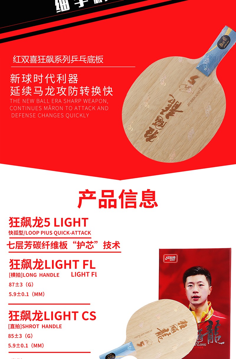 - 商品名稱:紅雙喜DHS 狂飚龍五light 狂飆龍5輕量型 專業(yè)底板