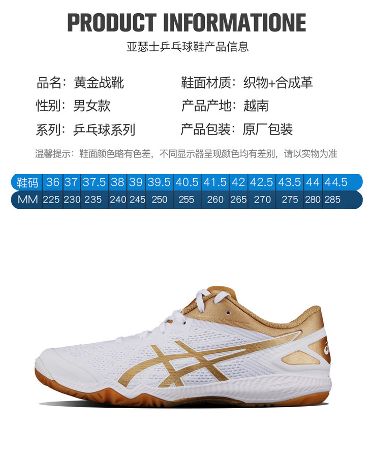 - 商品名稱:亞瑟士Asics 1073A010-102 乒乓球鞋 專業(yè)乒乓球運(yùn)動(dòng)鞋 周啟豪奪冠款黃金戰(zhàn)靴