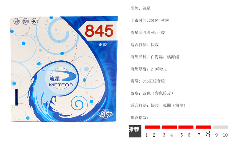 - 商品名稱:流星Liuxing 845 正膠套膠 彩色正膠 藍(lán)色膠面 橙海綿