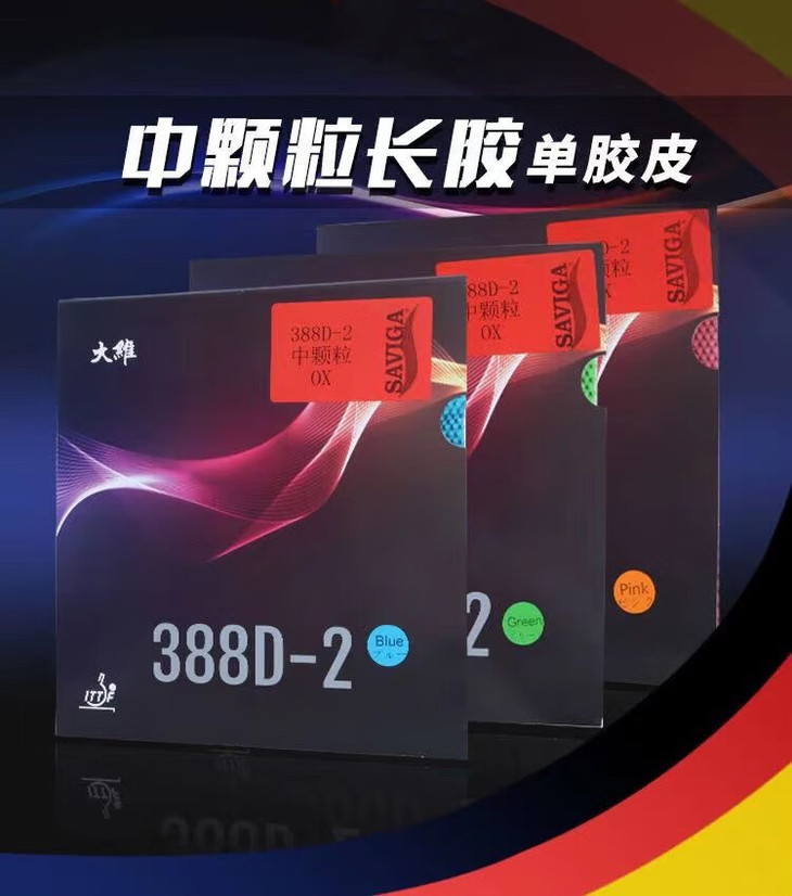 • 商品名稱:大維Dawei 388D-2 長膠單膠皮彩色版 388D2中顆粒長膠彩色單膠皮