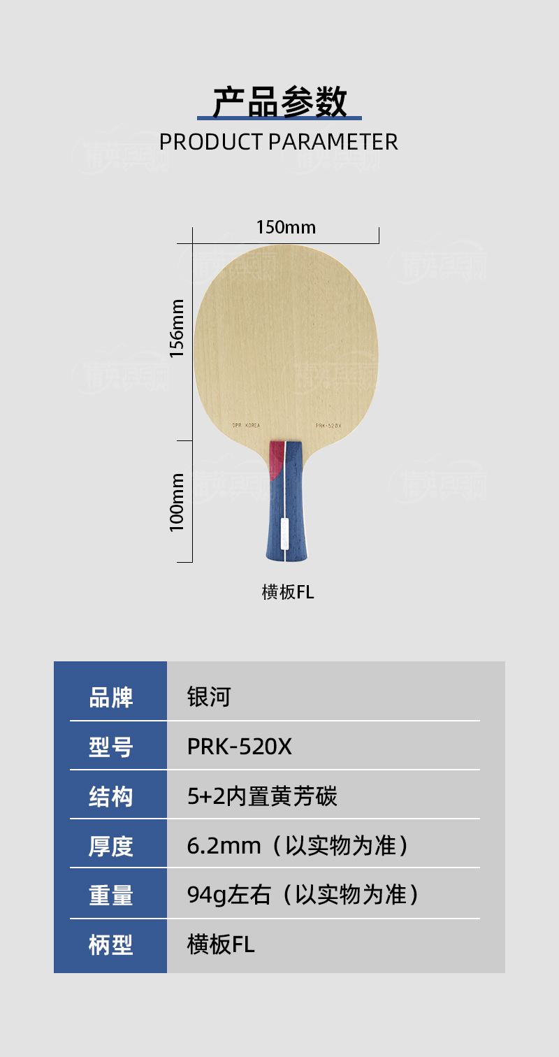 - 商品名稱(chēng):銀河Yinhe PRK 520X朝鮮球員邊松景同款使用5+2內(nèi)置結(jié)構(gòu)乒乓球拍底板