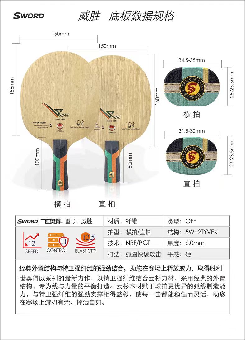 - 商品名稱:Sword世奧得威勝專業(yè)乒乓球拍底板弧圈快攻超薄纖維底板上臺率高旋轉(zhuǎn)強