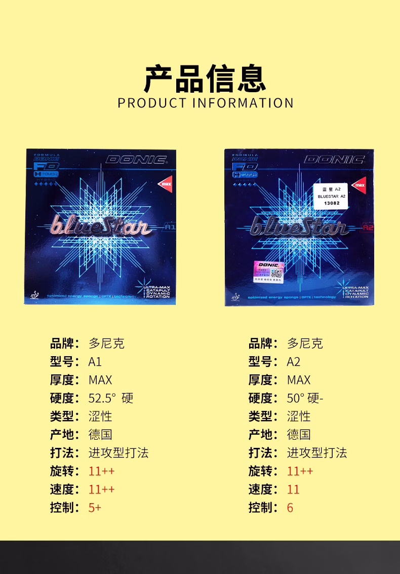 - 商品名稱:Donic多尼克13081藍星A1專業(yè)乒乓球膠皮正手澀性反膠套膠德系高彈內能海綿