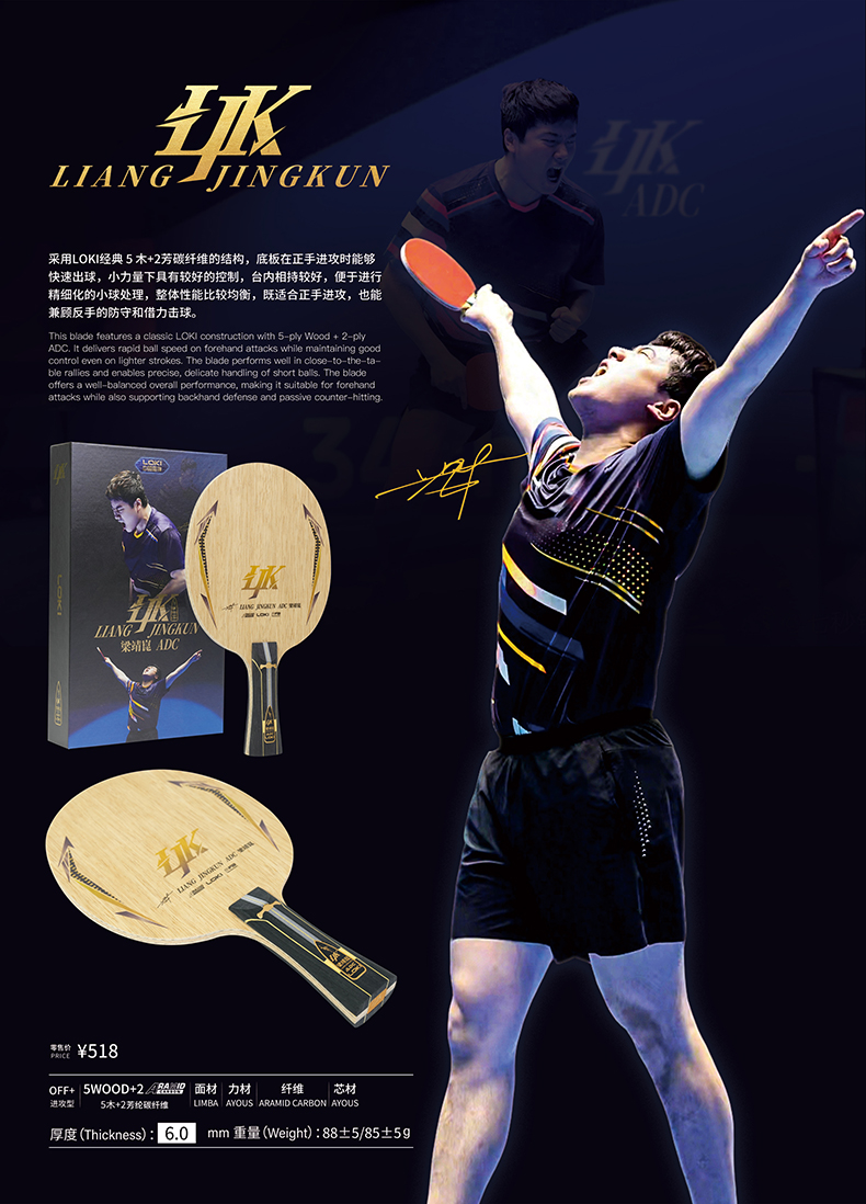 - 商品名稱:Loki雷神梁靖崑ADC市場(chǎng)版專業(yè)乒乓球拍底板內(nèi)置5+2碳素纖維底板(送鑰匙扣+梁靖崑保護(hù)膜2片)