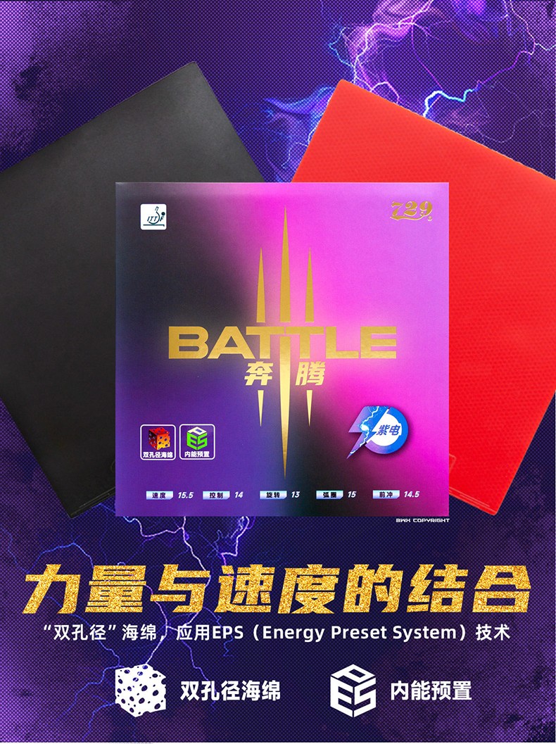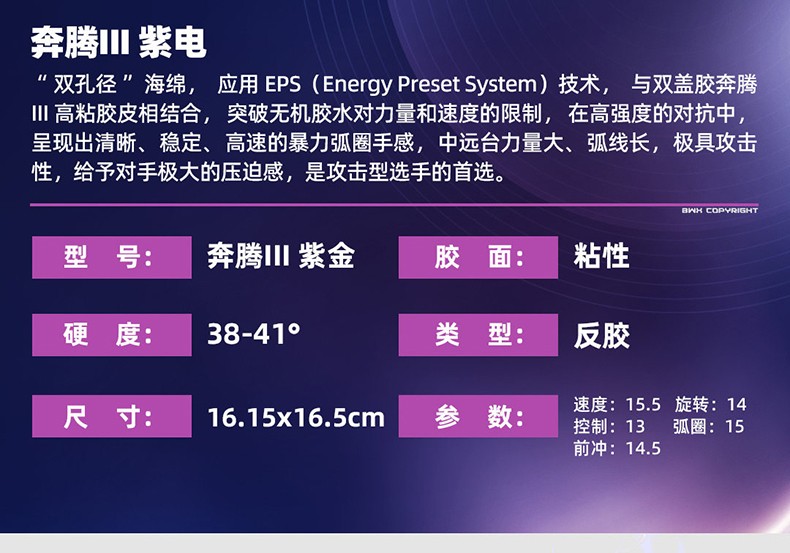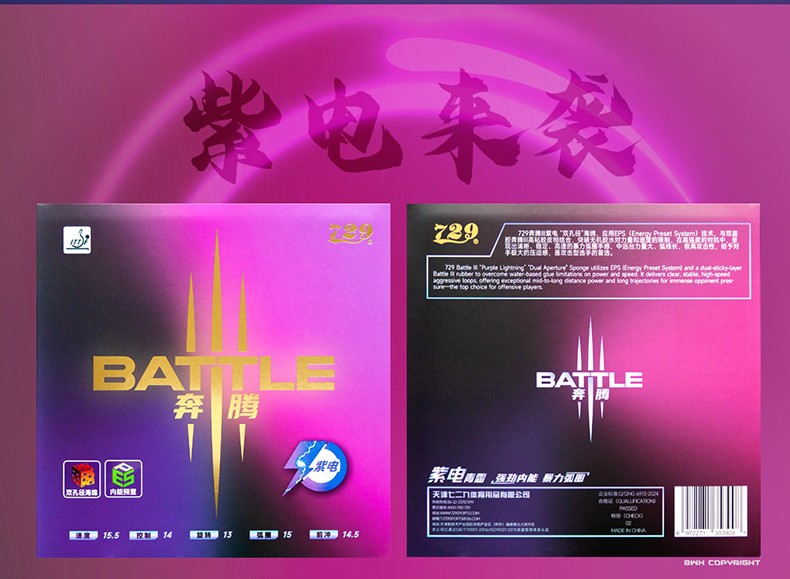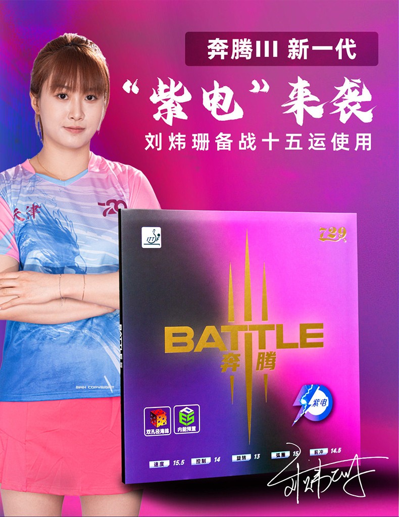 - 商品名稱(chēng):七二九729奔騰3紫電劉煒珊同款明星套膠乒乓球膠皮快攻弧圈國(guó)手乒乓套膠