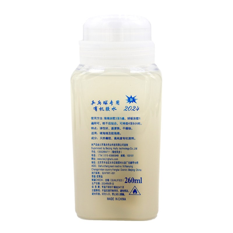 無機膠水缺點:1.相比有機膠水,價格略貴。2.膠水干的慢。3.對球的速度、力量和旋轉都有一定的負面影響。